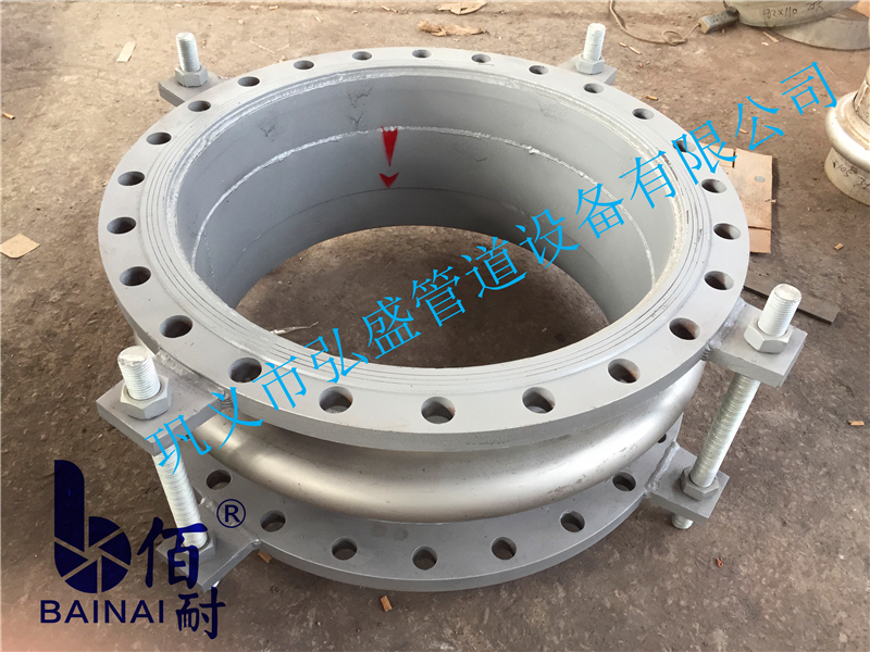 (二)確定膨脹節類型。根據(jù)公式(1),設備接口處的熱位移如下:U X=D X X叮X A T=362 X 11.50 X 10 X(60—2O)=16.65m m;U Y=D Y×盯X△T=(一423)×11.50××10一×(60—20)=一(yī)19.55r a m;U Z:D Z X盯X A T=(一475)X 11.50×X 10一×(60—20)=一21.85m m;R X=R Y=R Z=0.0 0。(注:D X、D Y、D Z是在PD M S中測出的距離(lí)。R指角偏轉位移,設備端點的(de)附加位移是相對於(yú)設備固定點的位(wèi)移。負值指某坐標軸的反向。)根據公式(2),此管段在x方向上△X=僅×LX X A T=l1.14×10一x 458×(60—20):20.41m m,在Y方向上△Y=0lT×LY×A T=11.14×10一X(一139)×(60—20):一(yī)6.19 m m,A Z=0.O0。設備接口處和管段(duàn)位移合並:此係統x方向的熱位移為37.06r a m,Y方向的熱位(wèi)移為(wéi)一25.74r a m,Z方向的熱位移為一21.85m m。經過位移數據分析,能夠同時(shí)吸收x、Y、z三個方向位移的波紋管膨脹節(jiē)隻有單式萬向鉸鏈型。